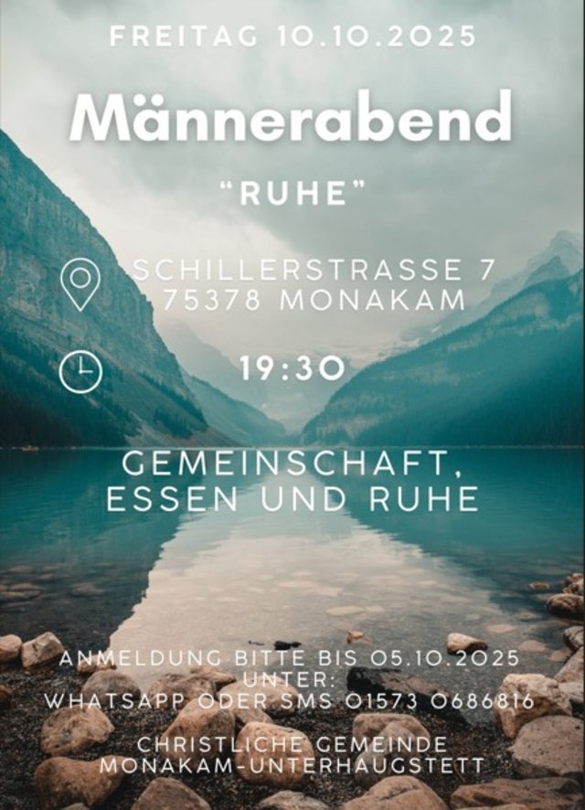 Männertreff: Freitag nach Termin, Ort nach Absprache; Kontakt: Joel Blasche (joelblasche@gmx.de)